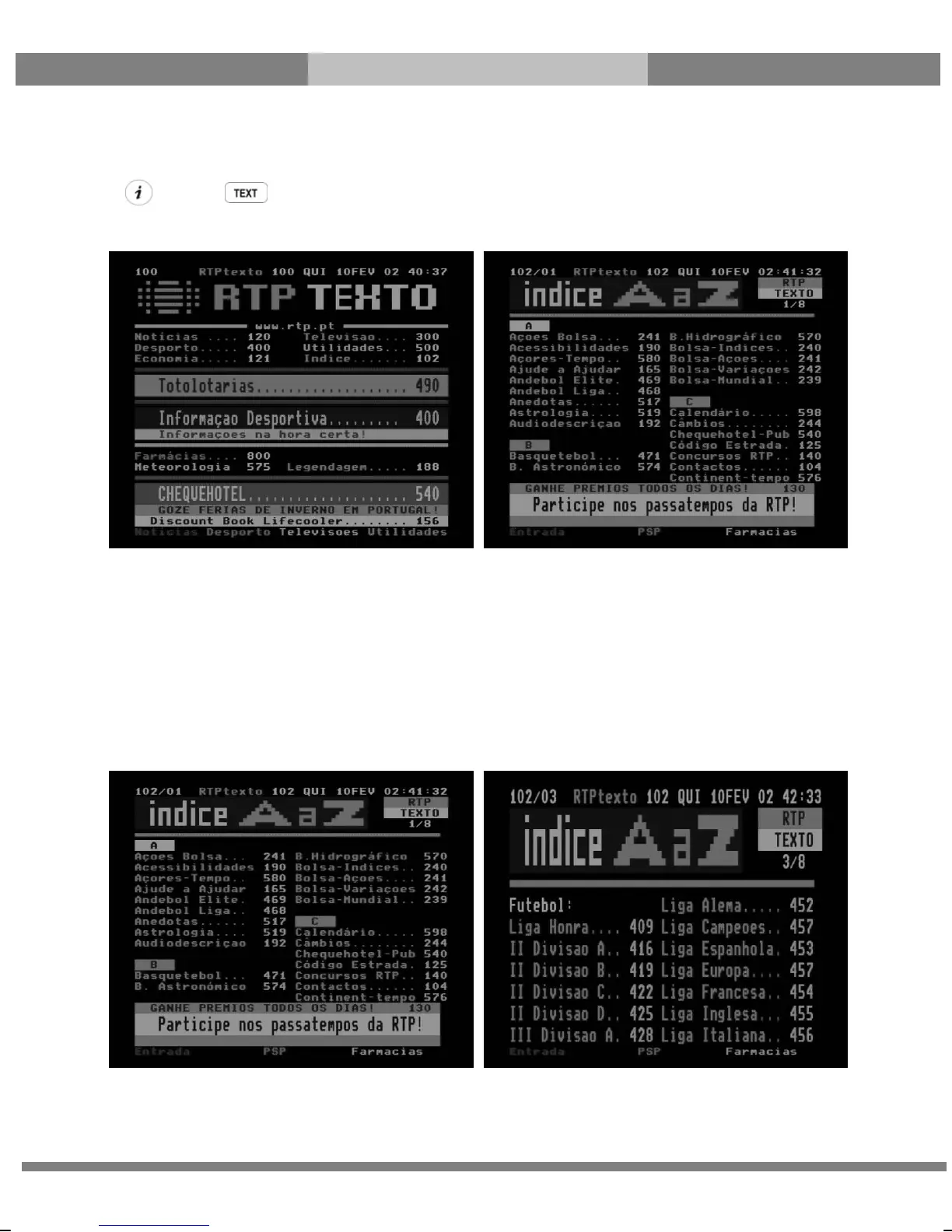 You can navigate through the Teletext page by using UP/DOWN key to select a text page. Also, just simply enter