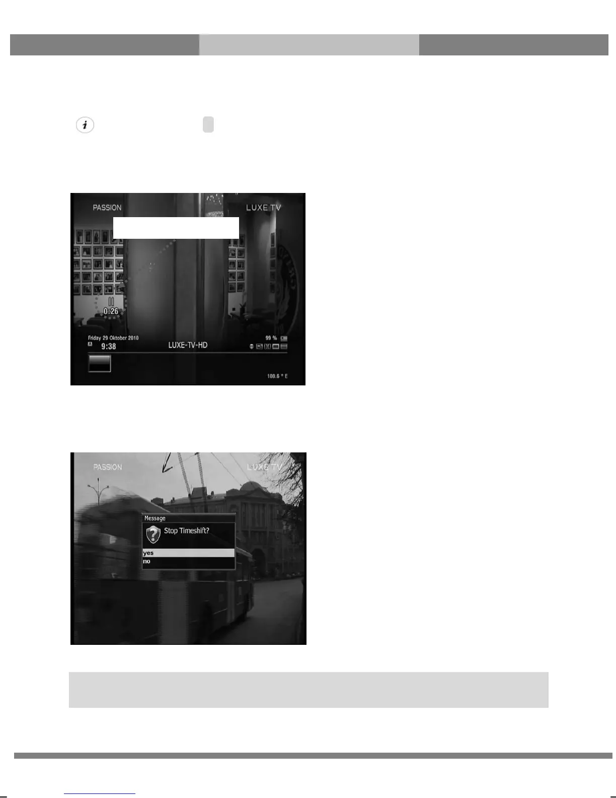 If you want to stop Timeshifted recording and to return to the live mode, press STOP key.