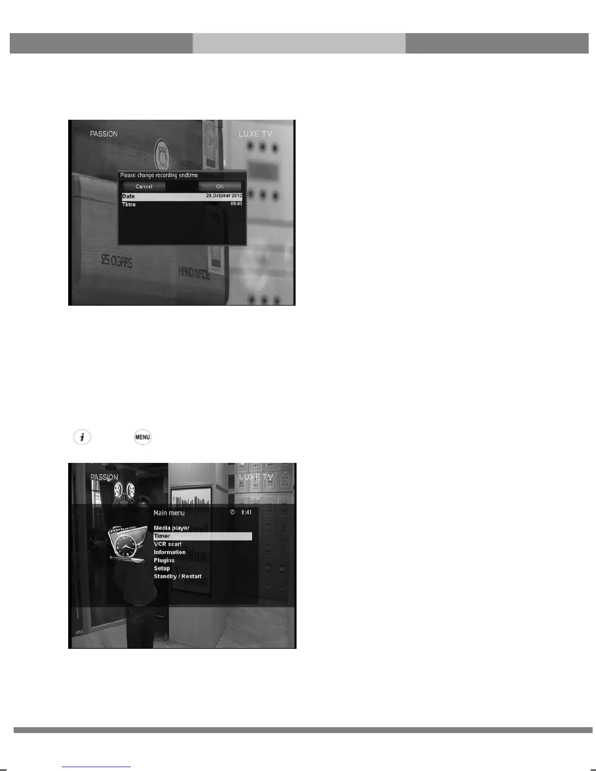 You can manage recording process using Timer List menu. Press MENU and select Timer on the menu.