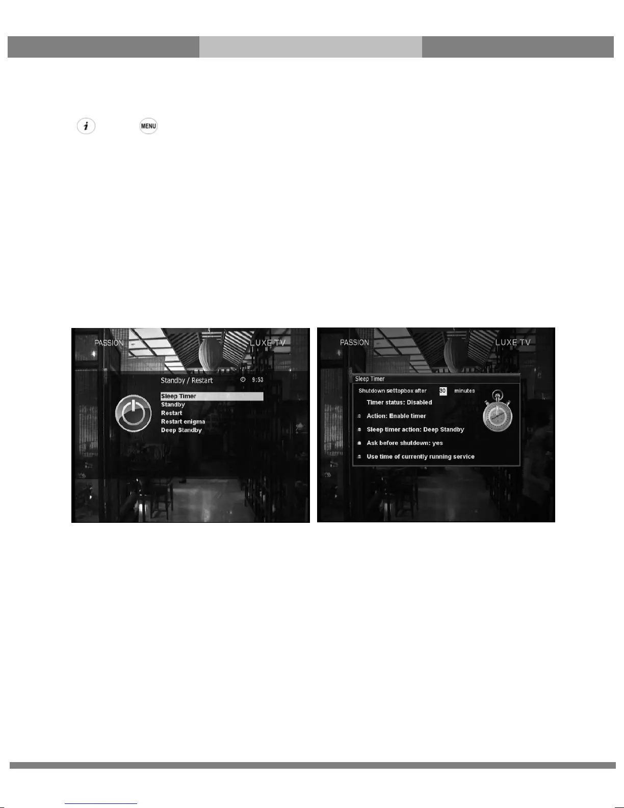 [ : Press Æ ‘Standby/Restart’ Æ ‘Sleep Timer’]