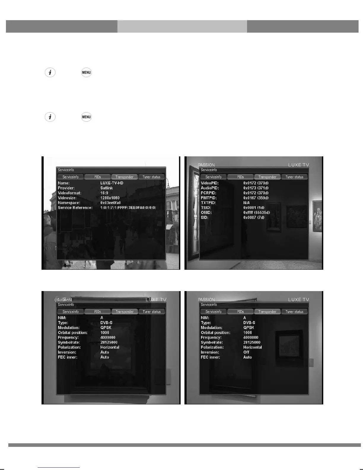In this menu, you can see all the parameter data of the current channel. The service information is well arranged in