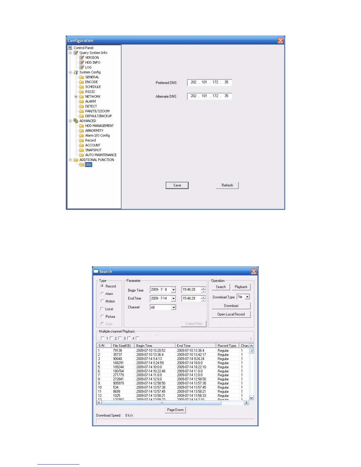 Please select record playback mode, and then select start time, end time and channel. Then please
