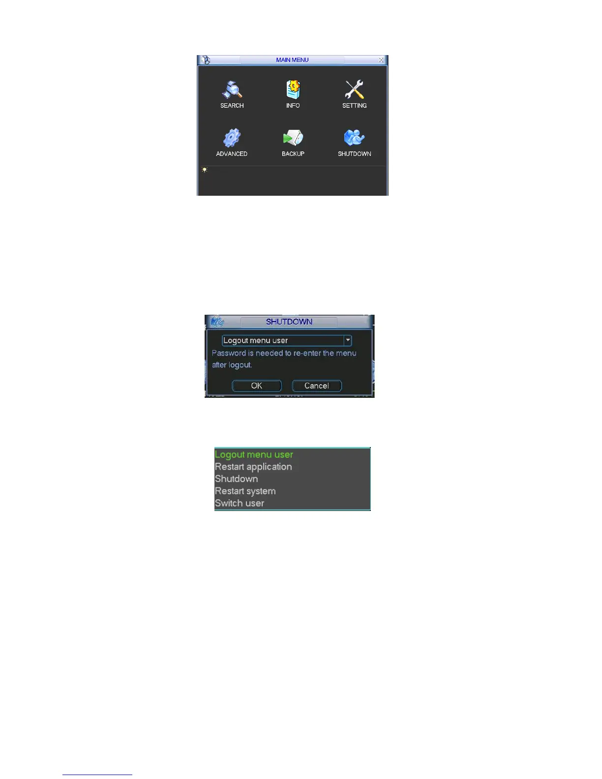 In the main menu, click shutdown button, you can see an interface is shown as below. See