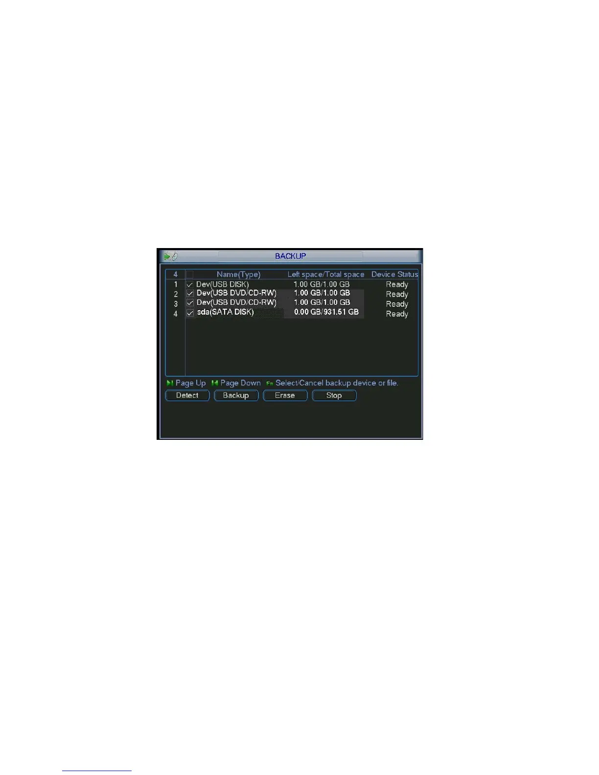 Click backup button, you can see an interface is shown as in X319H319H319HFigure 4-30. Here is for you to view