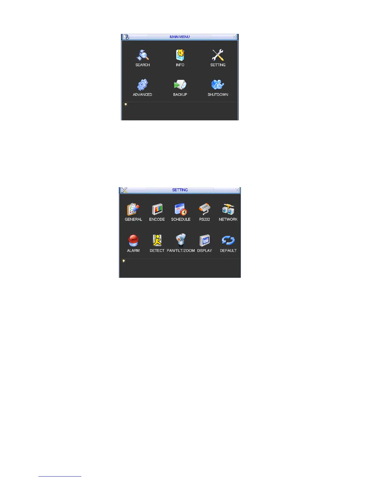In main menu, highlight setting icon and double click mouse. System setting interface is shown as