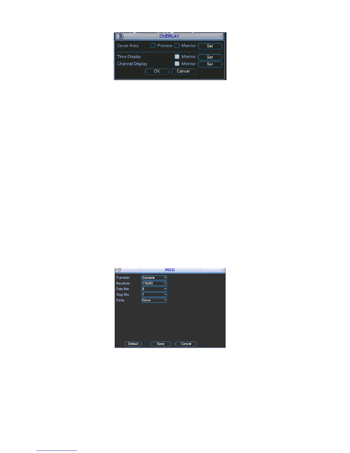 RS232 interface is shown as below. There are five items. SeeX363H363H363H326H Figure 5-8