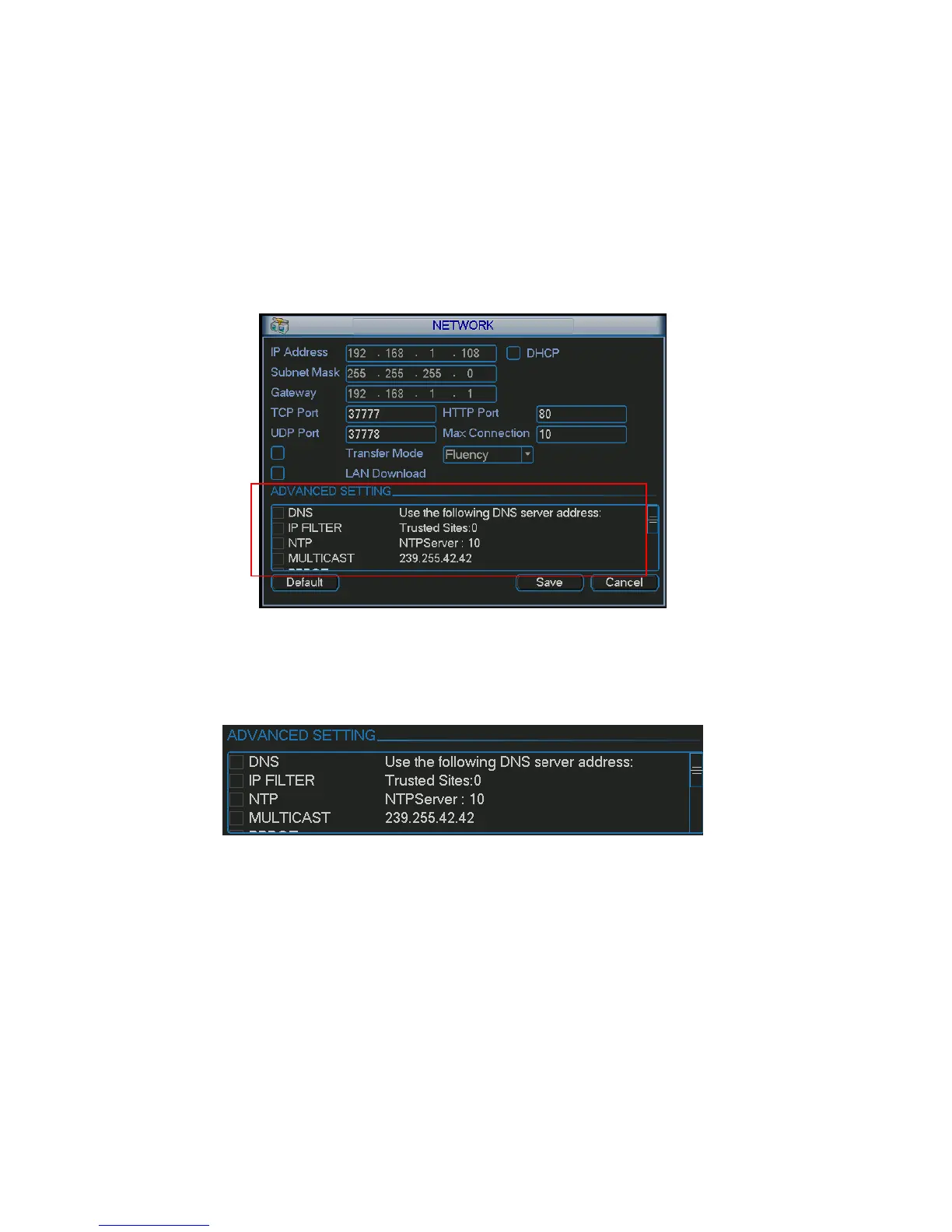 If you disable this function, all IP addresses can access current DVR.