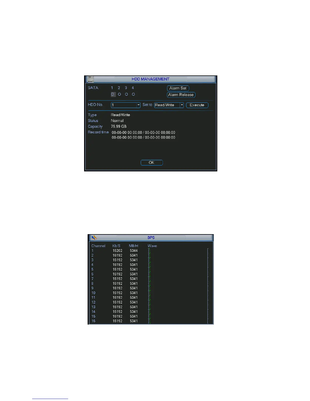 Here is for you to view current video data stream (KB/s) and occupied hard disk storage (MB/h). See