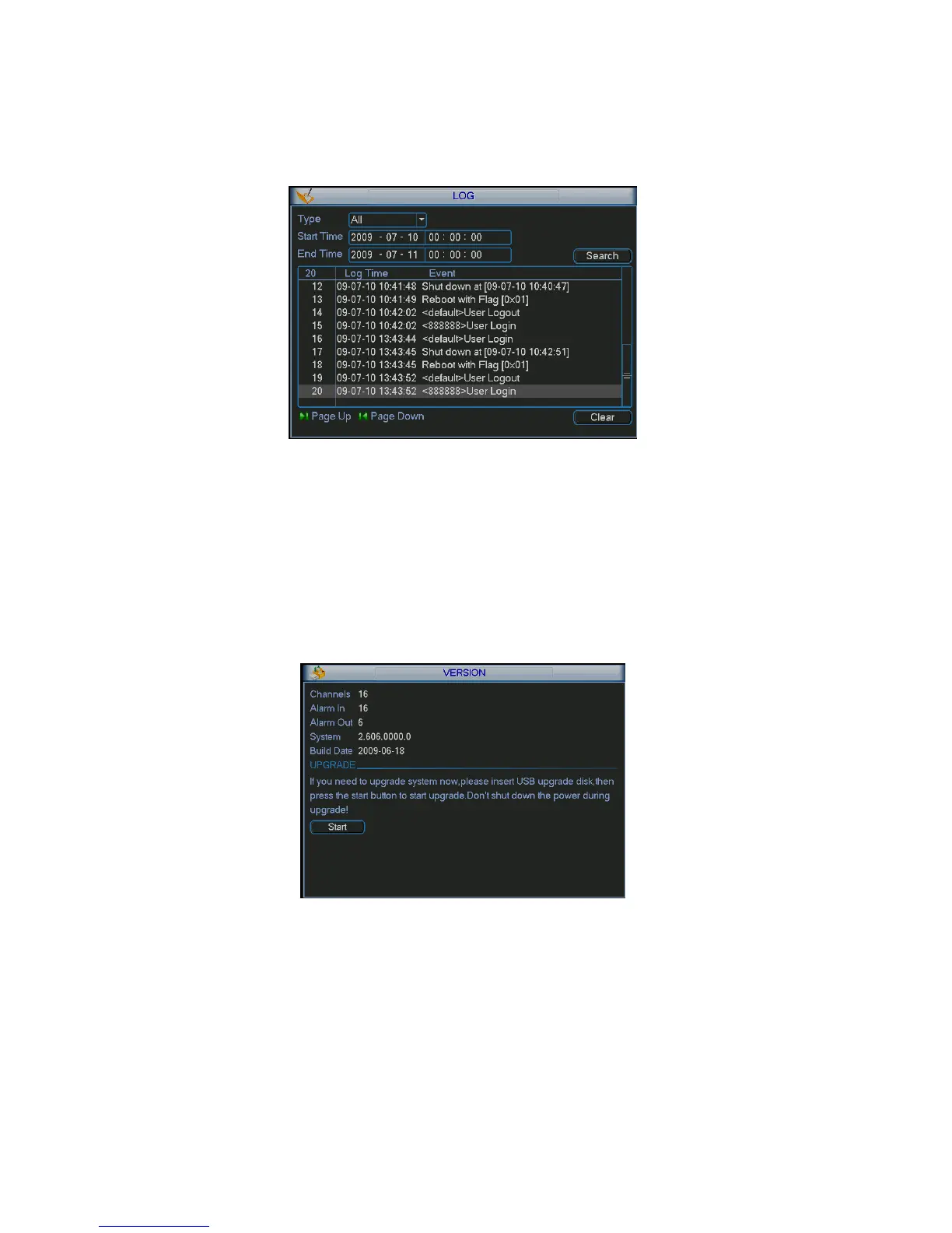 Pleased select start time and end time, then click search button. You can view the log files. Please