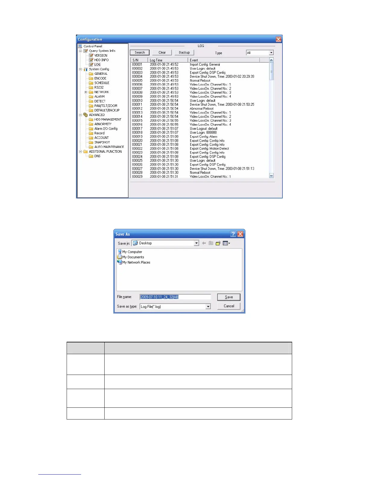 Clear You can click this button to delete all displayed log files. Please note
