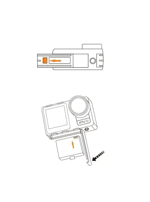 2. Insert the battery, then pull down the door and slide it