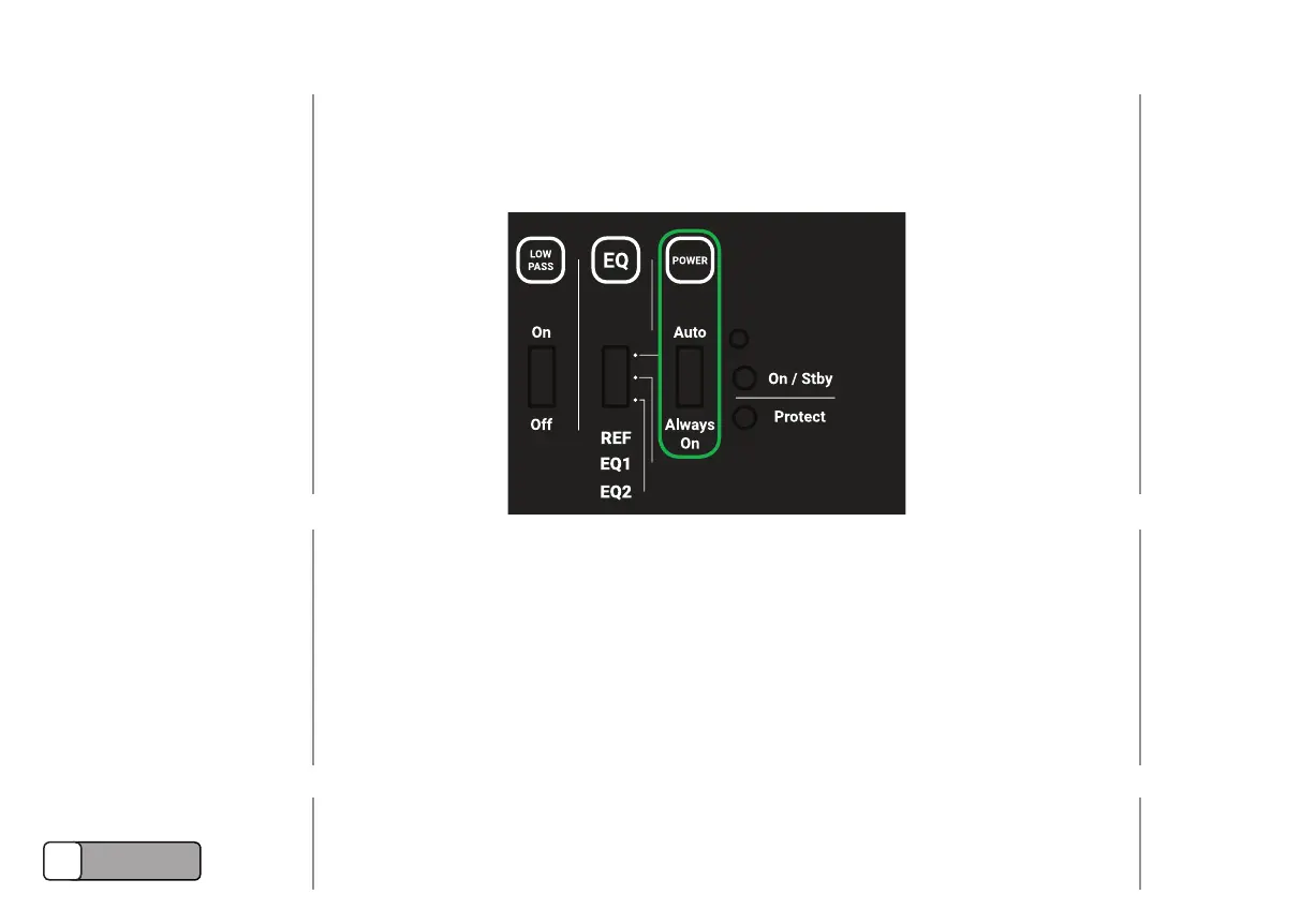 Wenn der Schalter in die Position „Always On“ geschaltet wird, bleibt der Subwoofer dauerhaft an und