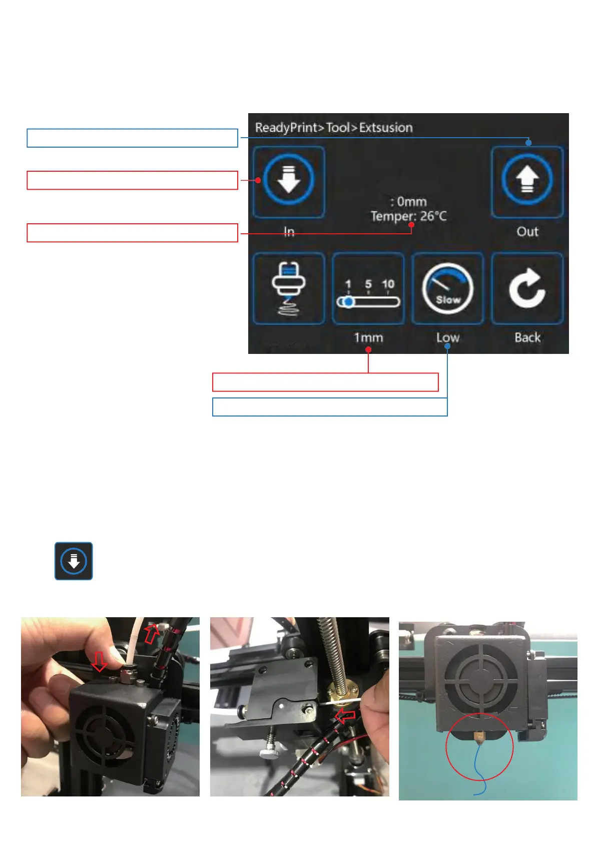 1. The extruder needs to be heated to the corresponding temperature of consumables