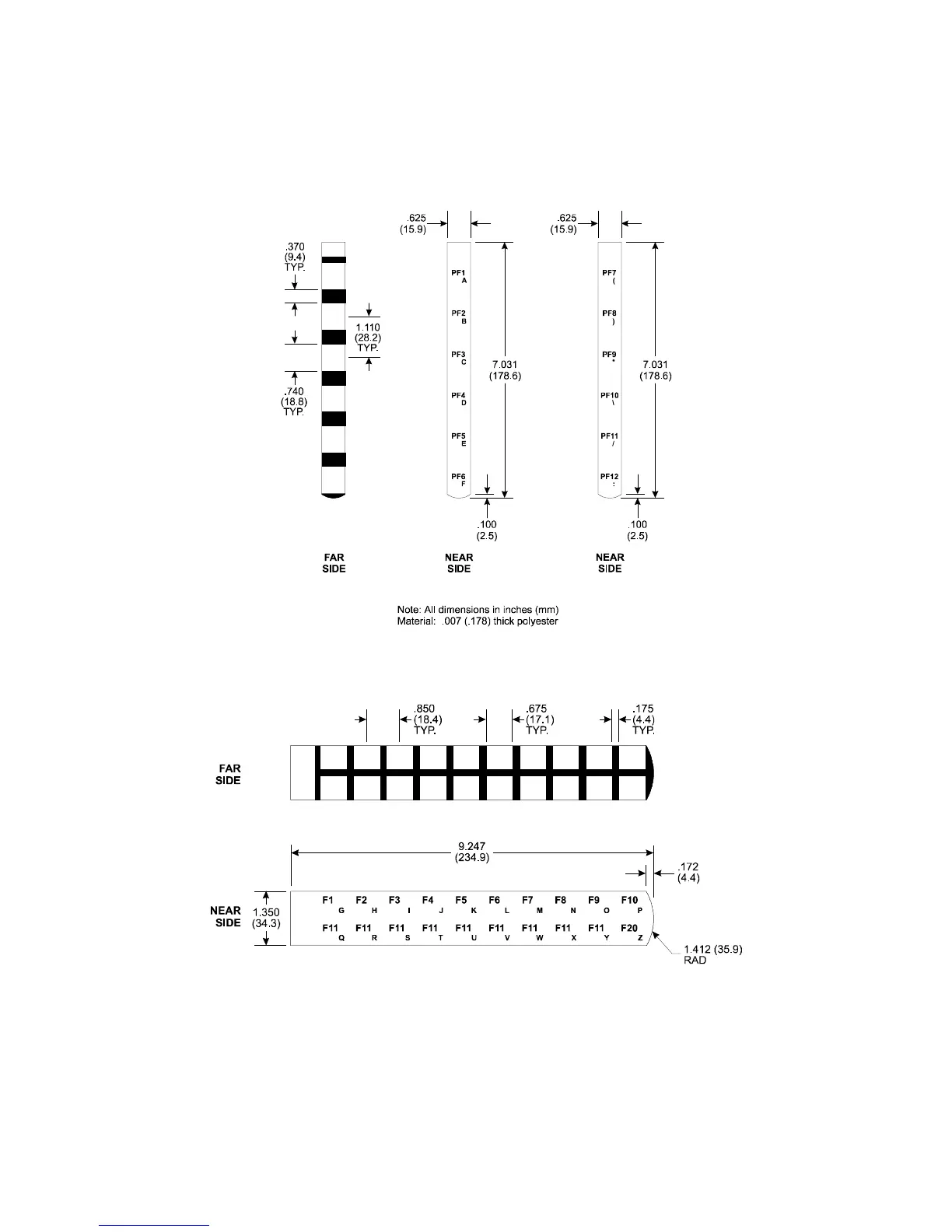 Figure 3-17. 3510KP/3512KP Keypad Inserts with Dimensions (PF1 – PF12)