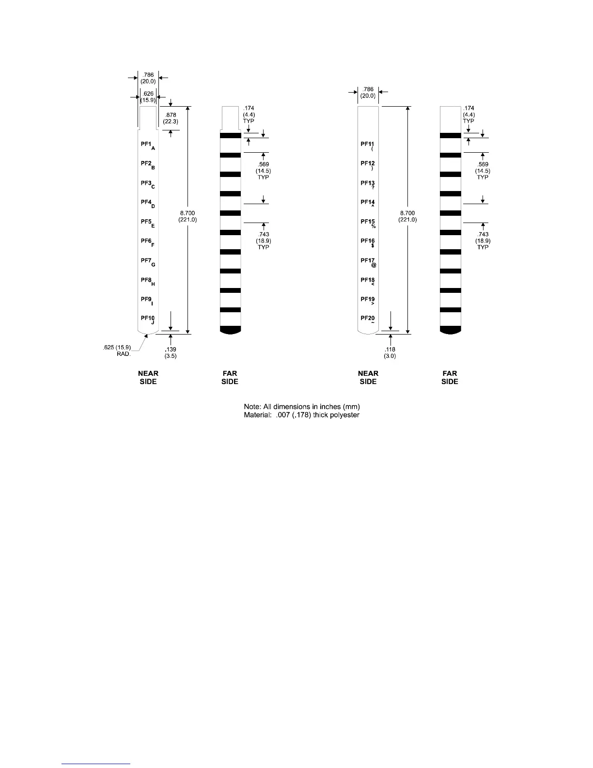 Figure 3-15. Keypad Inserts with Dimensions (PF1 - PF20)