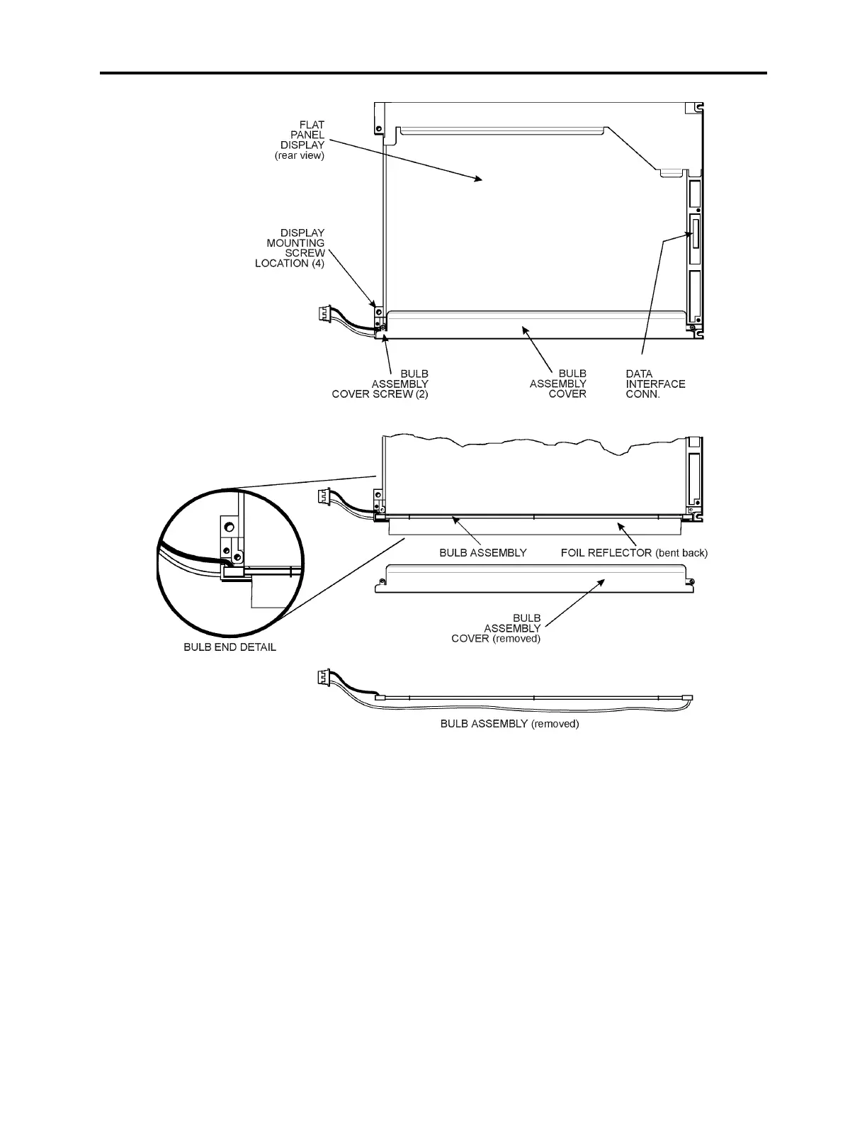 Because the white wire runs under the bulb assembly, detach the rear of the display