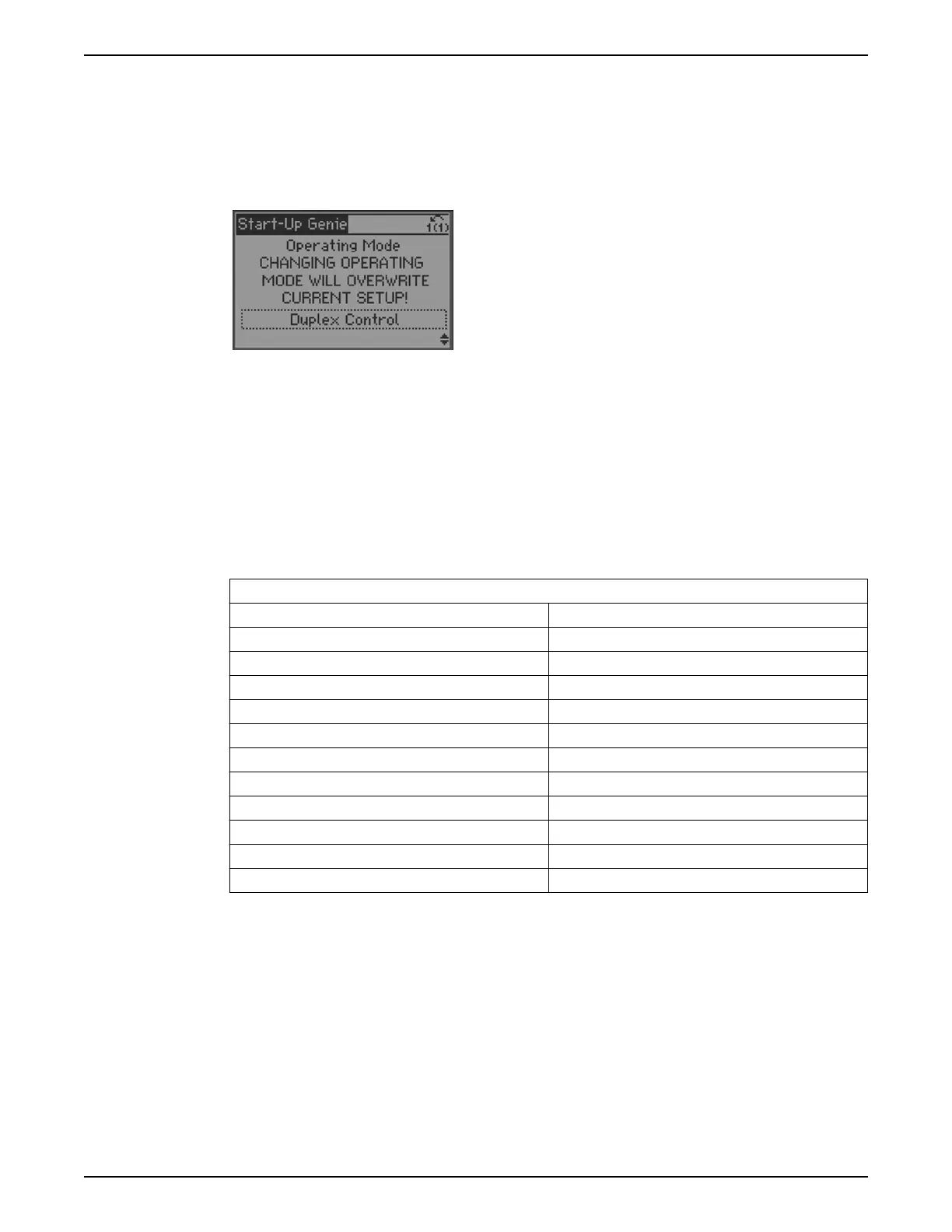 operation. Changing to Duplex Control will overwrite any preconfigured parameters.