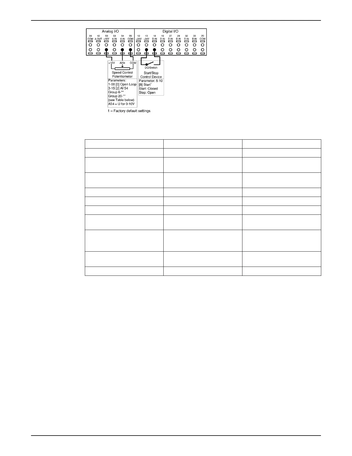 • Set [3-15] Reference 1 Source = Analog Input 54.