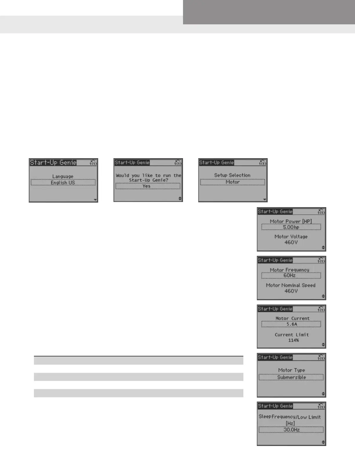 The Start-Up Genie will begin automatically after the initial power up (Screen 2) or it can be engaged by