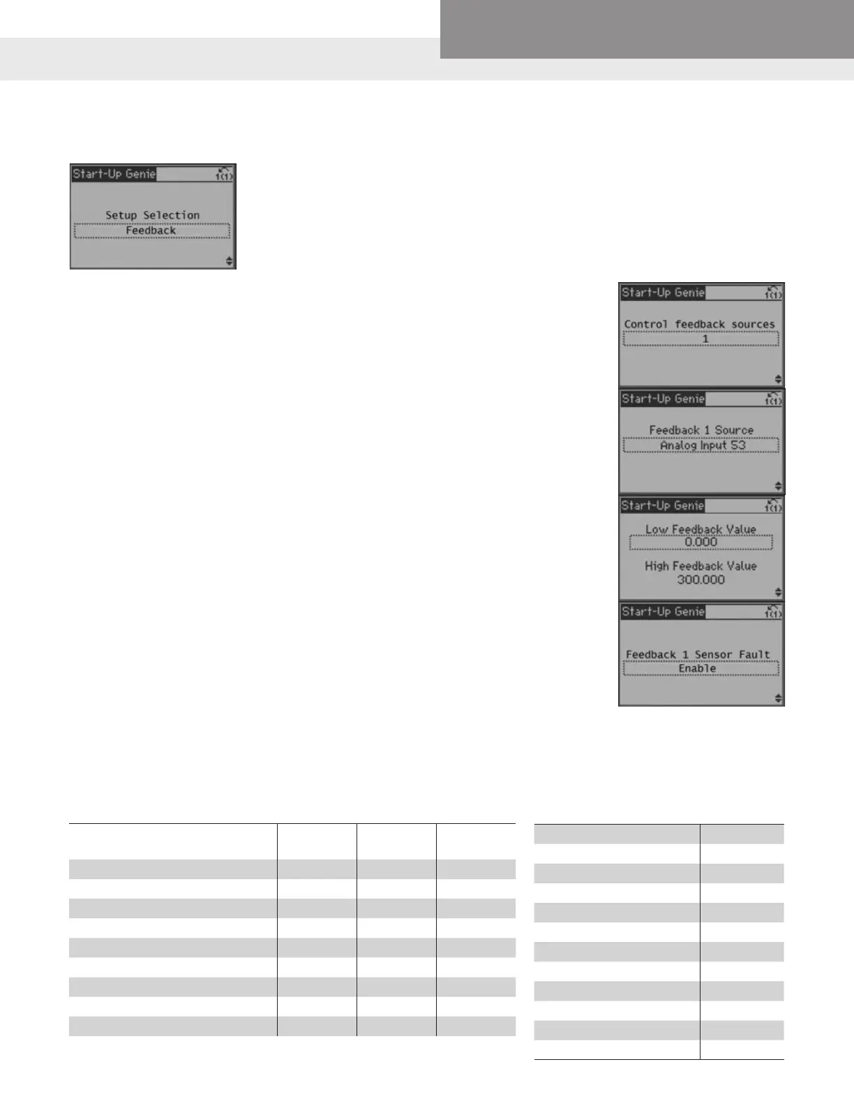 Feedback Setup allows the conguration of analog inputs (sensors) and other feedback sources.