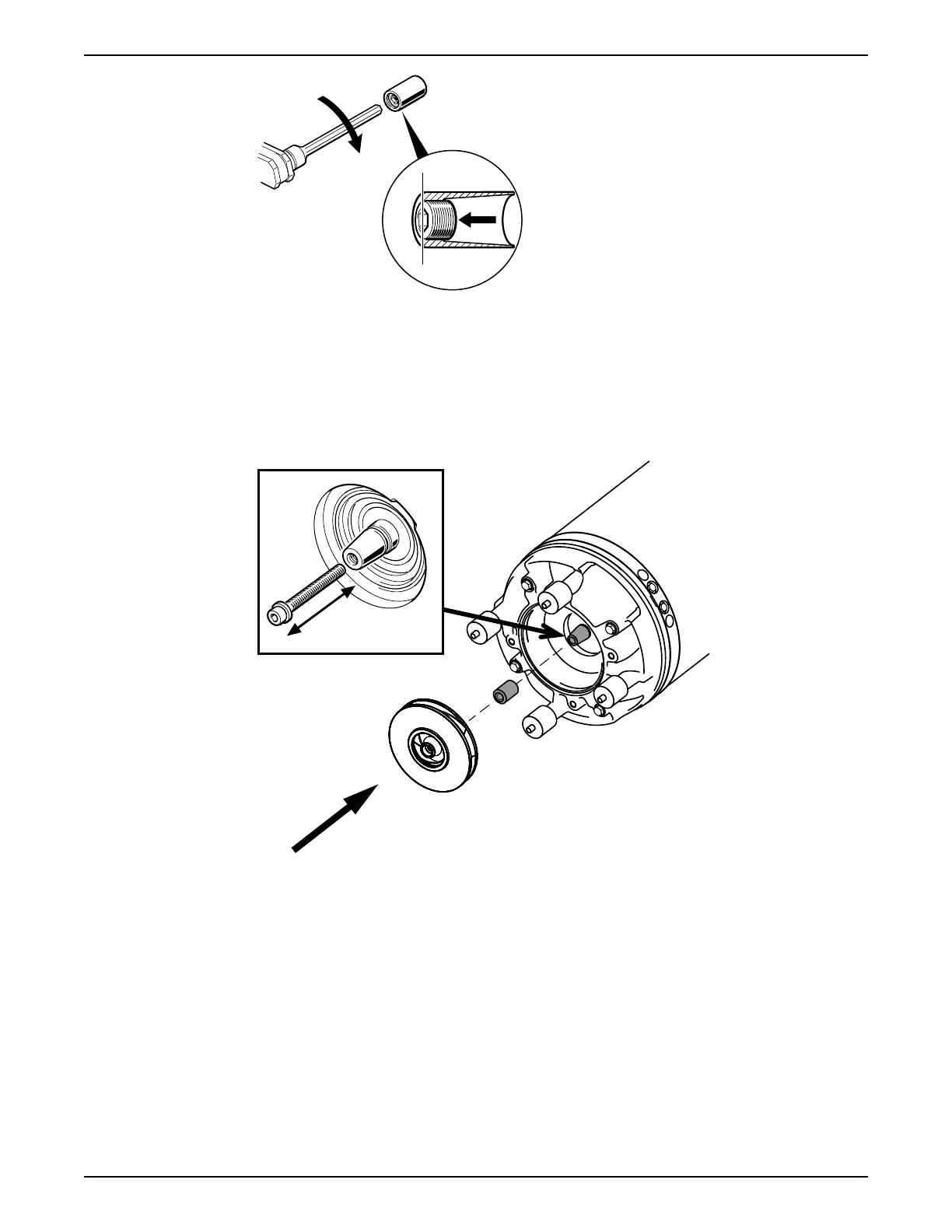 7. Press the impeller against the seal housing cover. Turn the adjustment screw