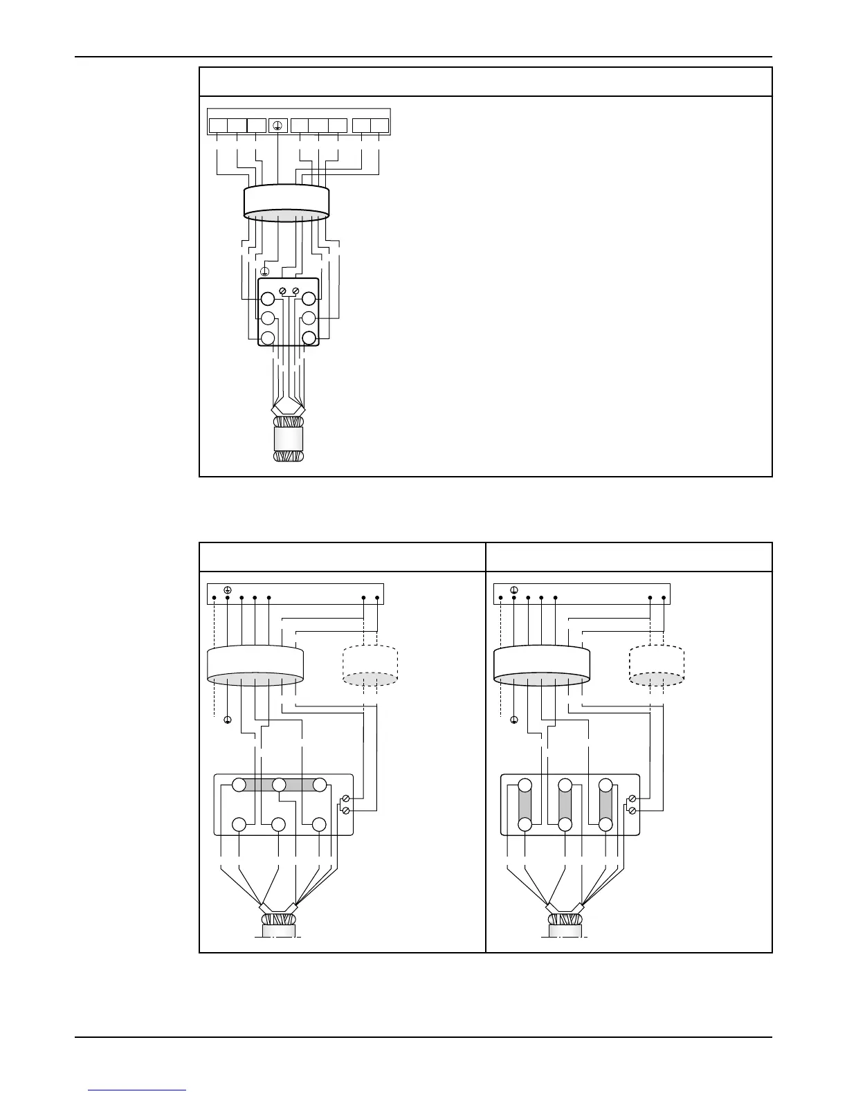 This table shows the connection diagrams for the SUBCAB 4GX/SUBCAB AWG (3-phase