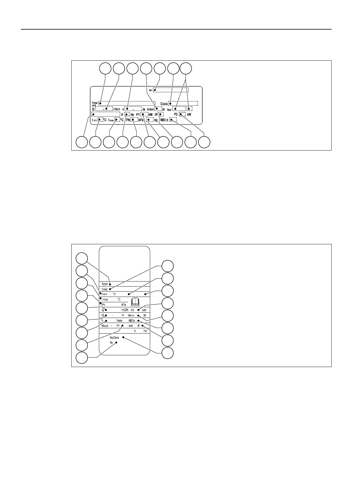 Data plate of models 1, 3, 5SVI (E) - 3~ / 1, 3, 5, 10, 15, 22SVI (C, M)