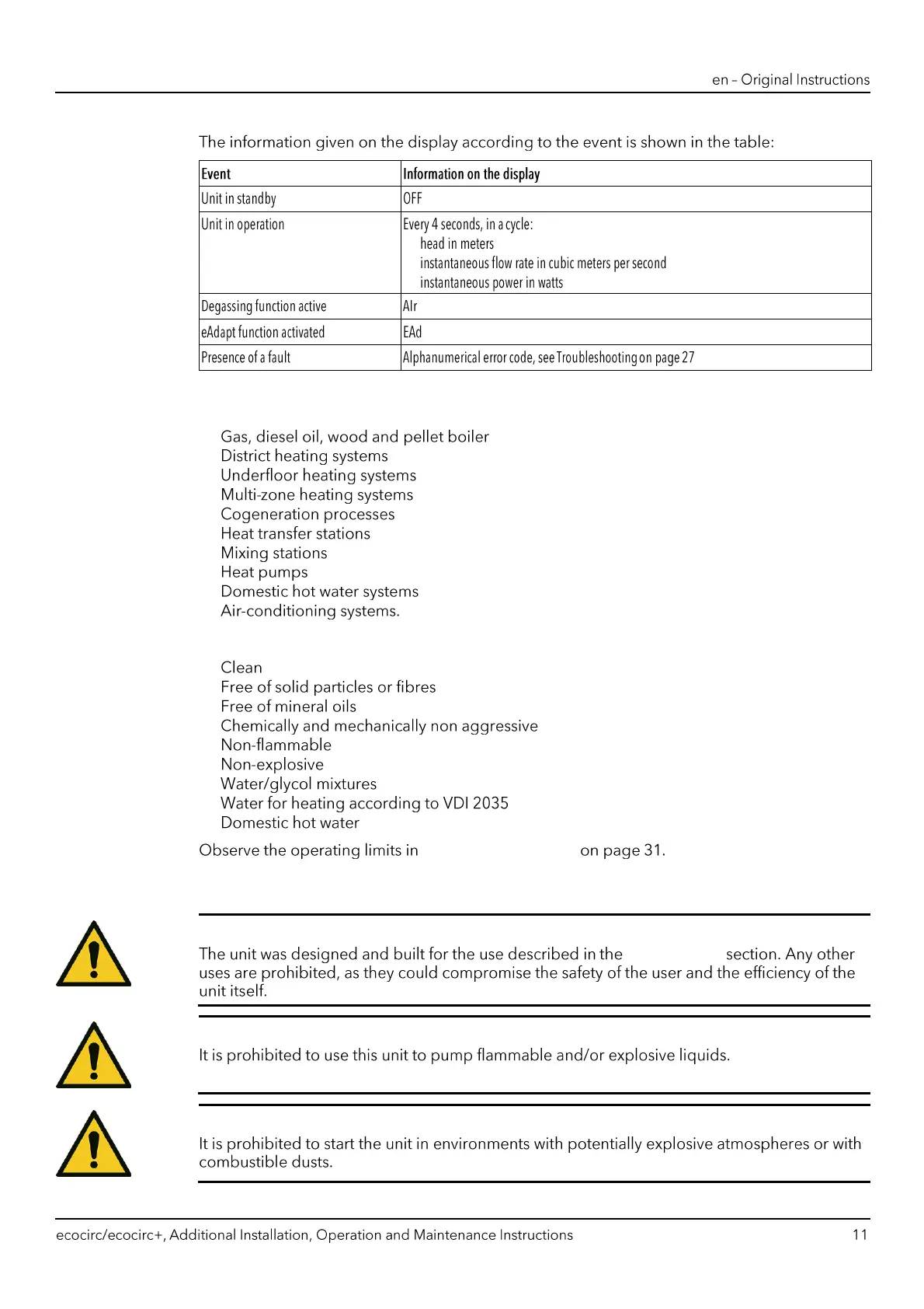 Xylem LOWARA ecocirc S - Intended Use; Improper Use