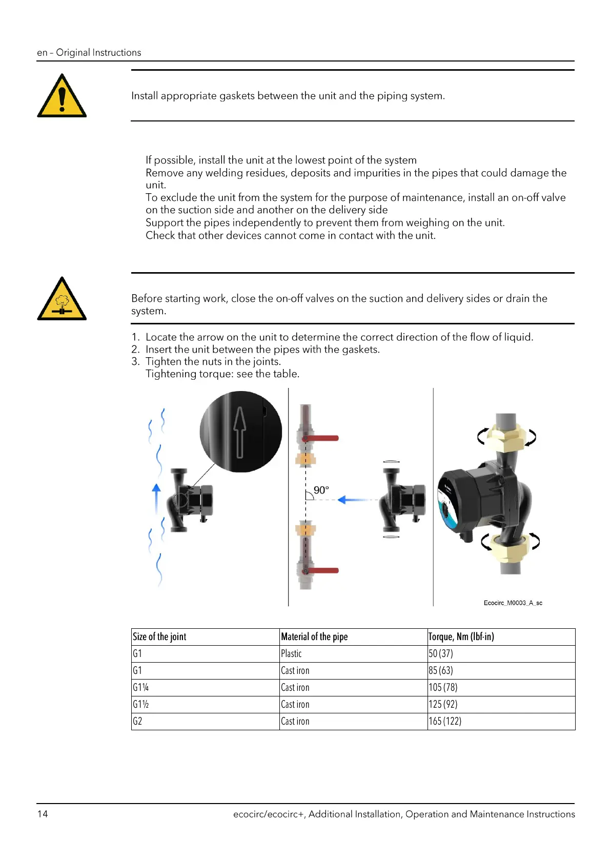 Xylem LOWARA ecocirc S - Guidelines for Hydraulic Connection; Assembly