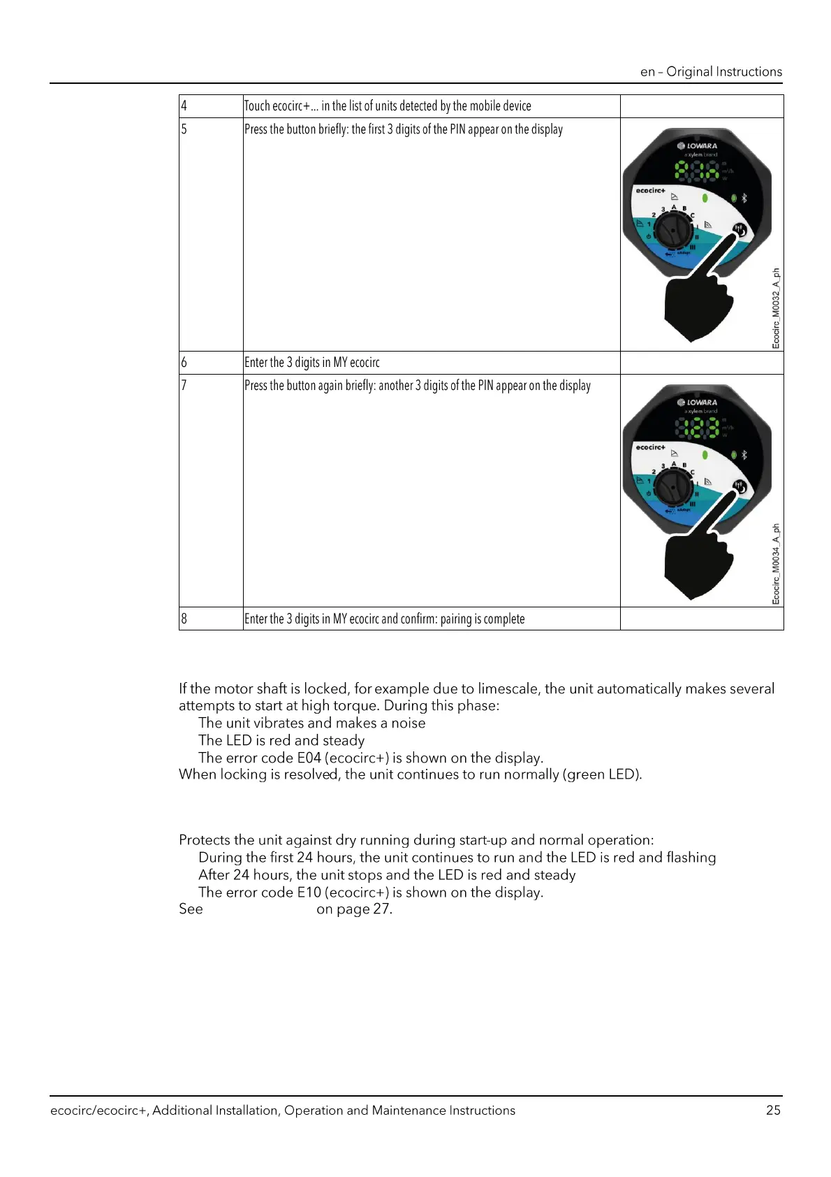 Xylem LOWARA ecocirc S - Starting at High Torque; Dry Run Signal