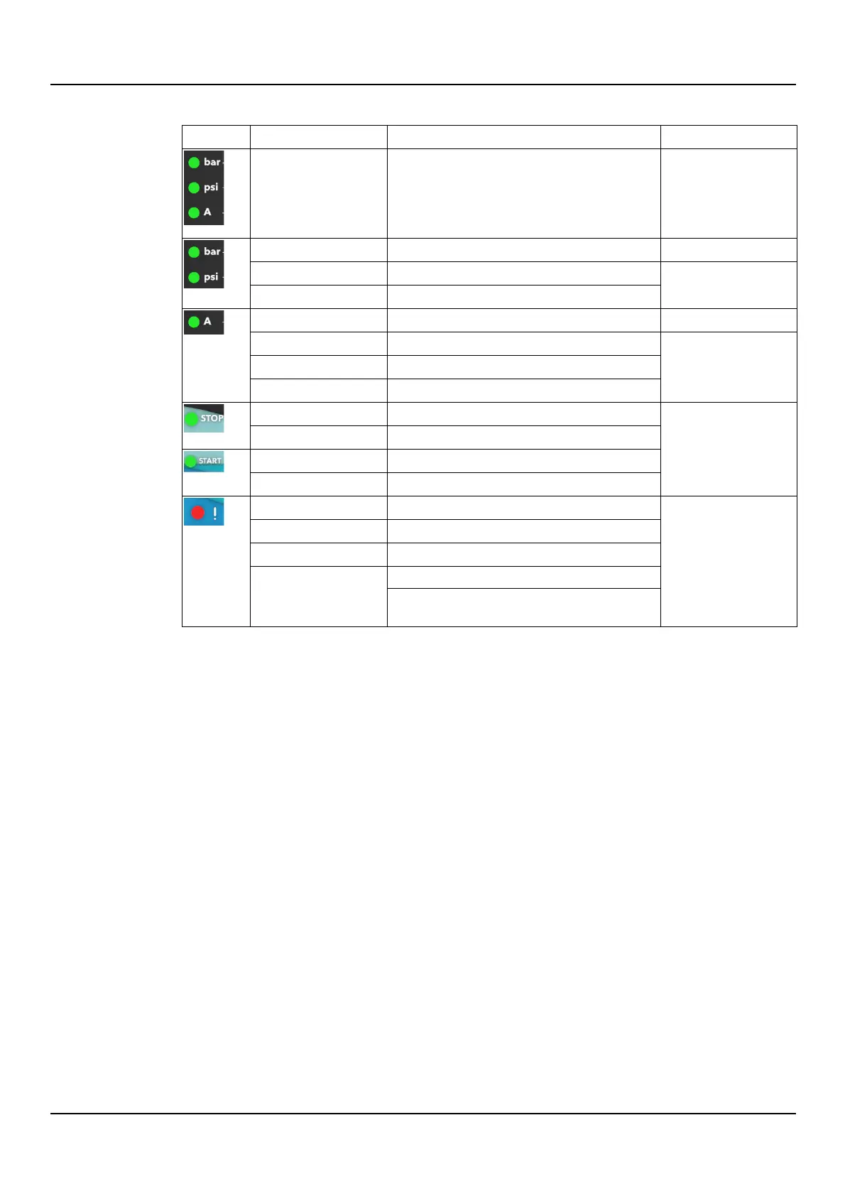 No alarm; pump unit running, stopped or in OFF mode