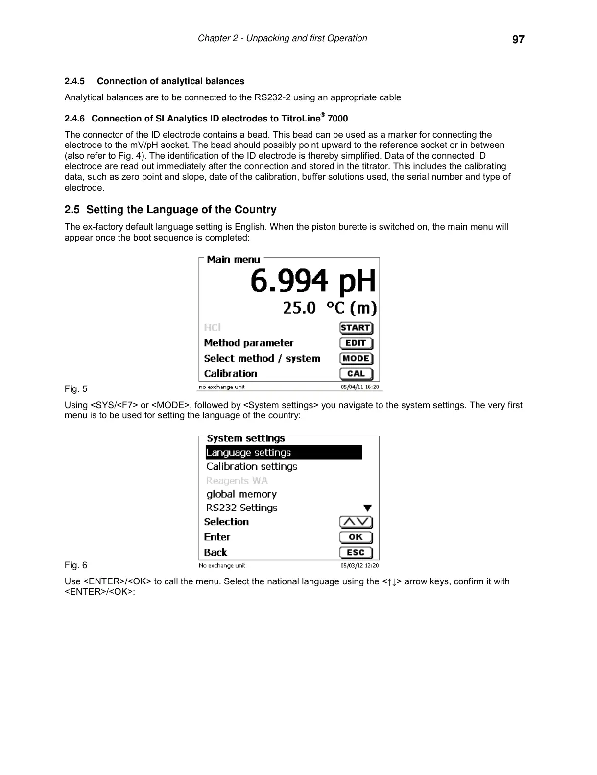 HOHFWURGHDUHUHDGRXWLPPHGLDWHO\DIWHUWKHFRQQHFWLRQDQGVWRUHGLQWKHWLWUDWRU7KLVLQFOXGHVWKHFDOLEUDWLQJ