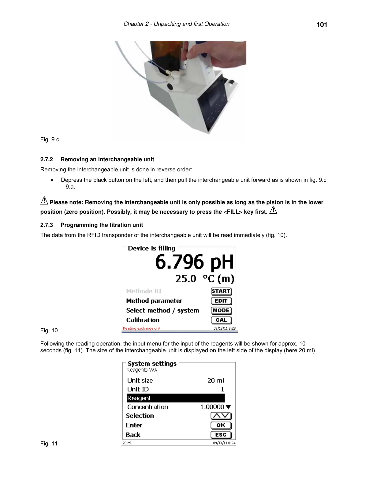 2.7.3 Programming the titration unit