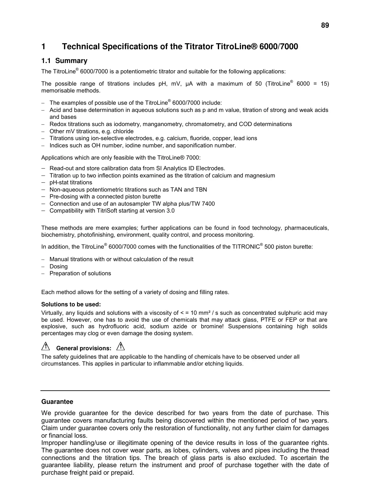 1 Technical Specifications of the Titrator TitroLine® 6000/7000