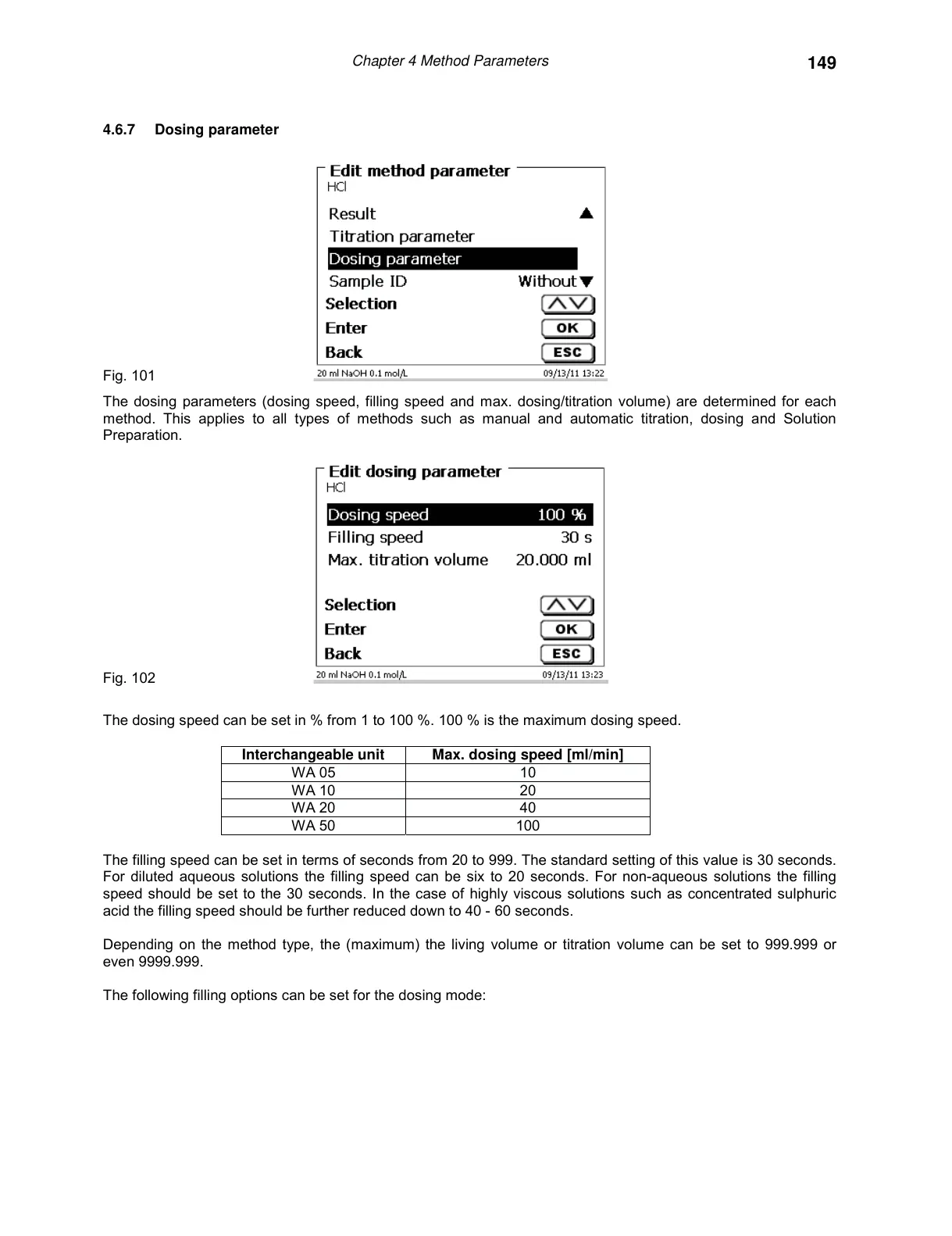 7KHGRVLQJ SDUDPHWHUVGRVLQJVSHHGILOOLQJVSHHGDQGPD[GRVLQJWLWUDWLRQYROXPHDUH GHWHUPLQHGIRUHDFK