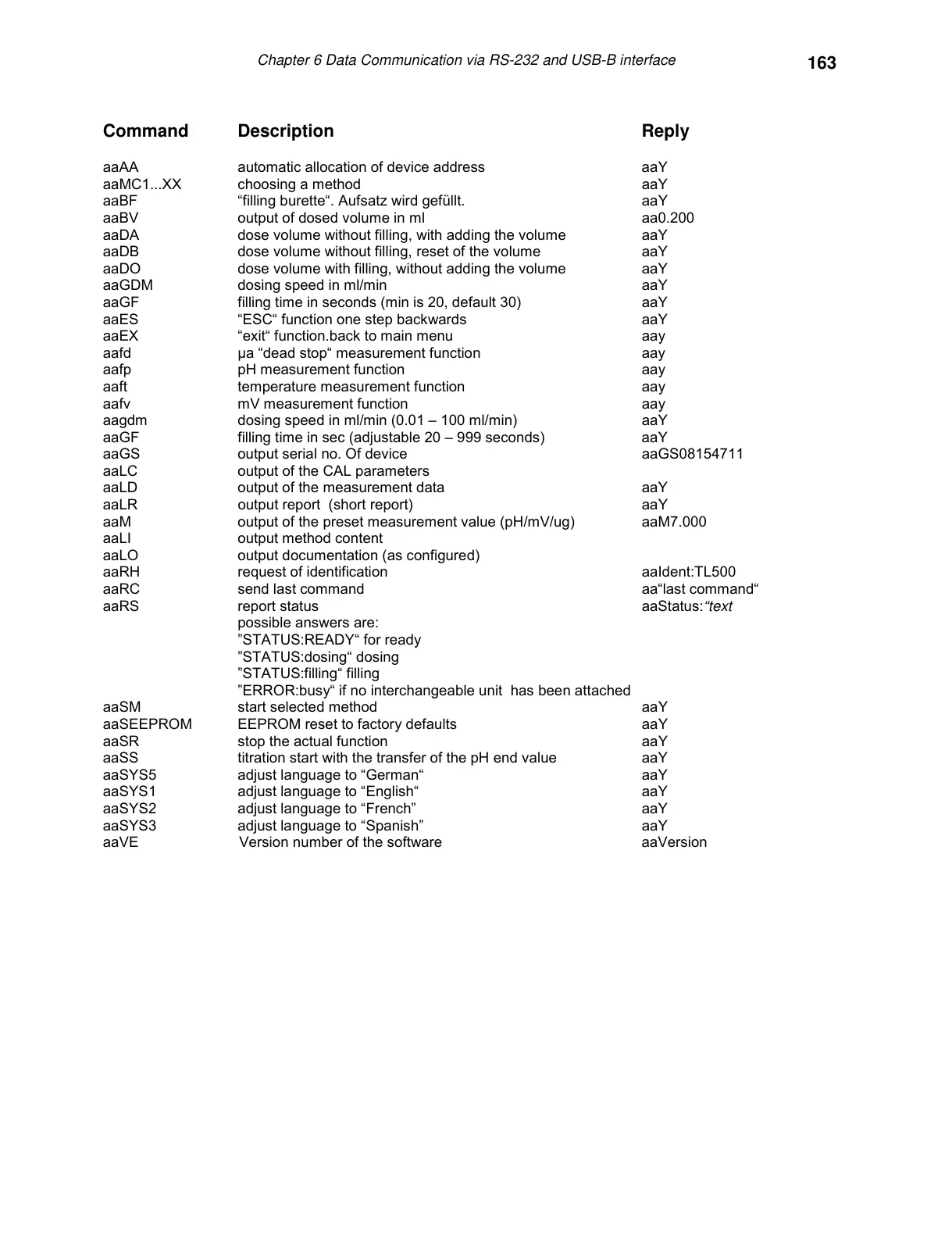 Chapter 6 Data Communication via RS-232 and USB-B interface