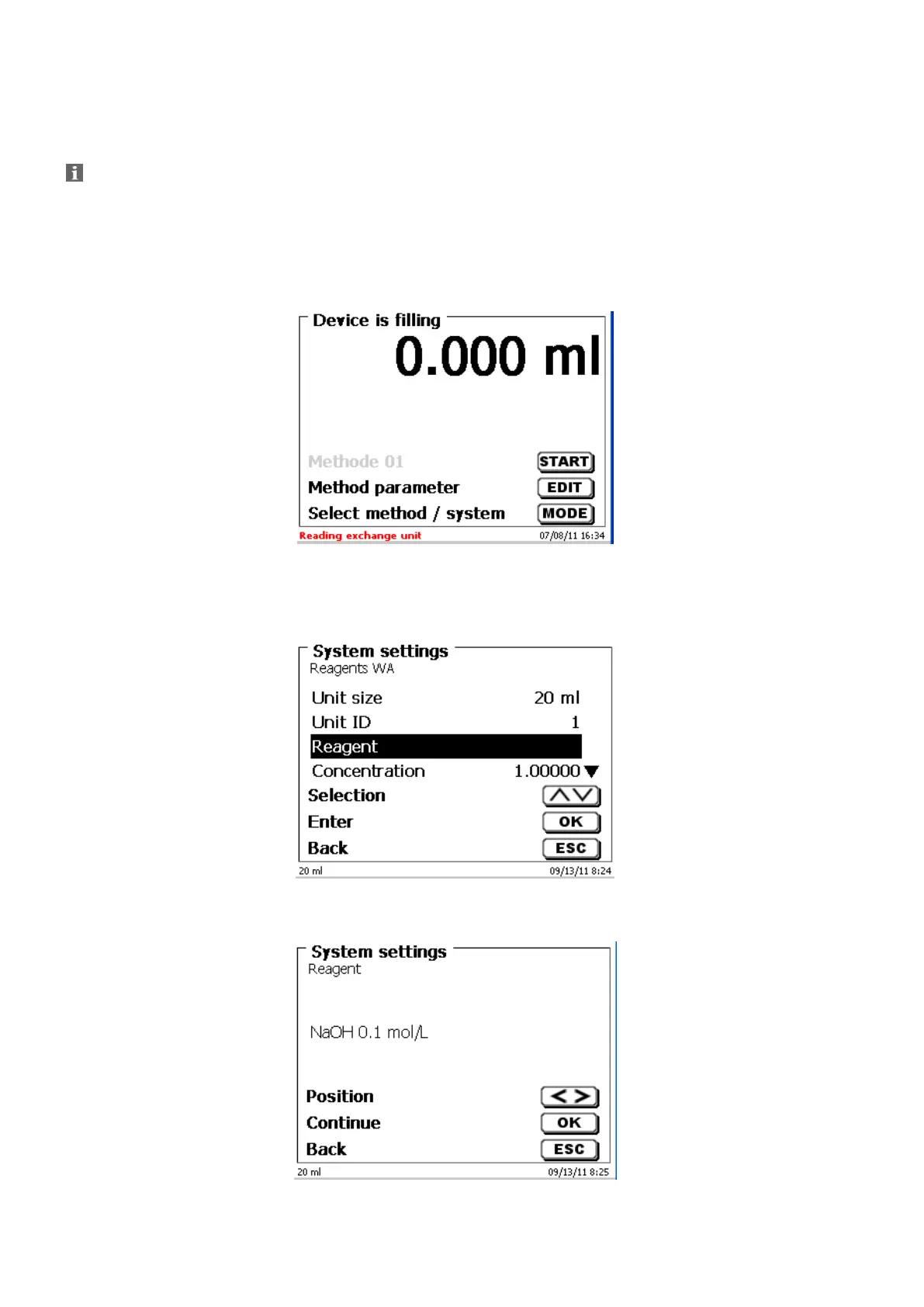 The input menu for the reagents appears for approx.10 seconds (Fig. 14).The size of the interchangeable unit is