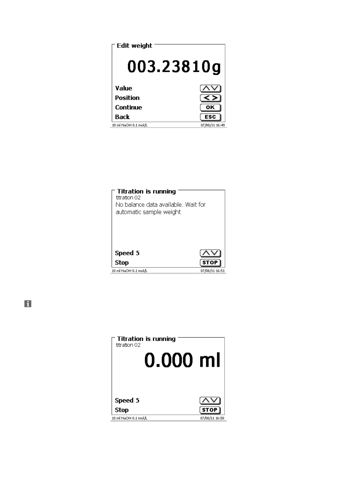 Titration will then begin directly after the transfer of the balance data without any further confirmation being
