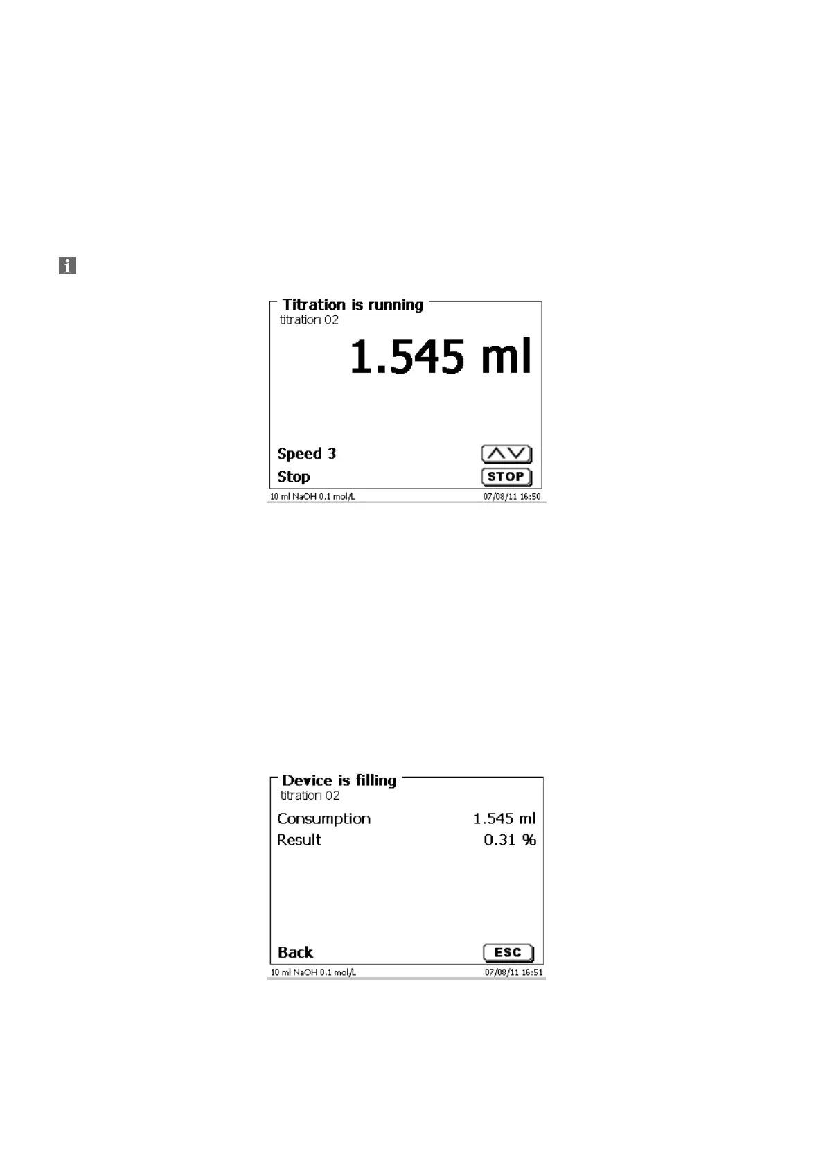 Even if the titration is completed, press <STOP> or approx. for 1 sec. the grey key of the manual controller.