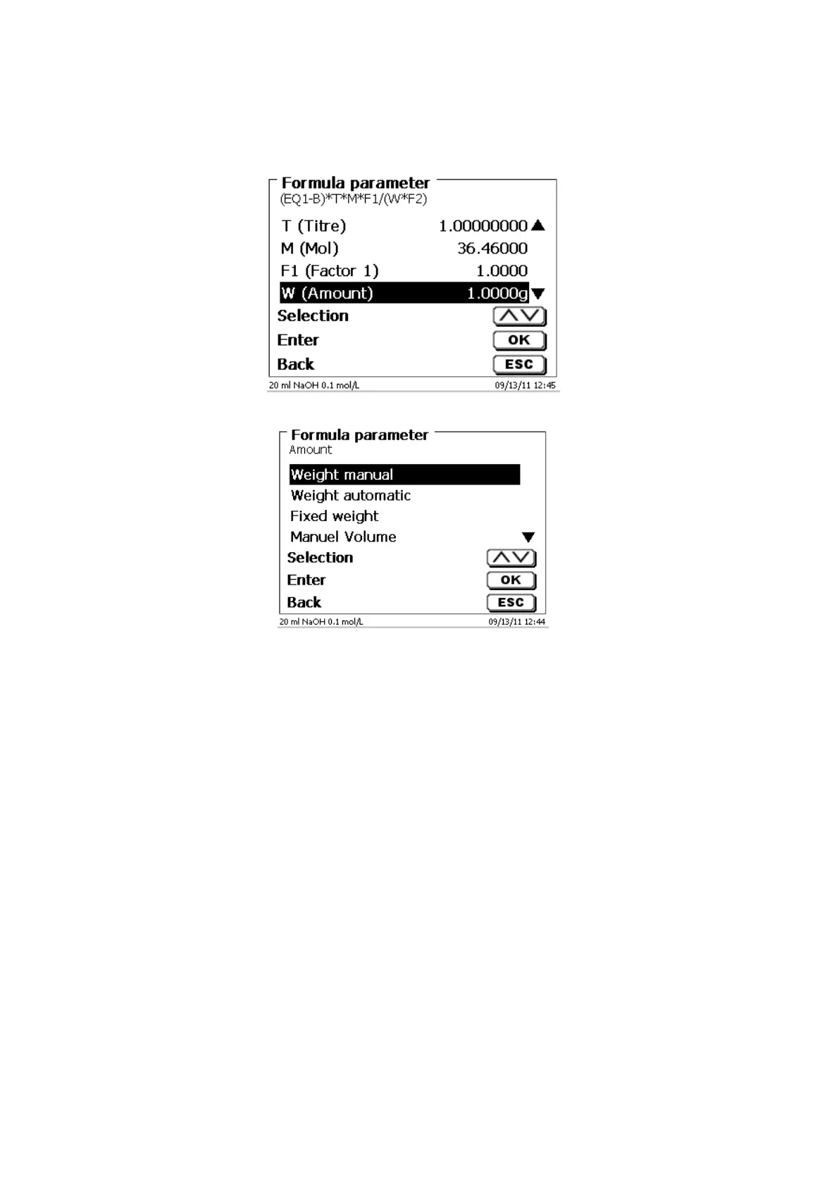 «Automatic sample weight»: The sample weight is automatically transferred by a connected balance.