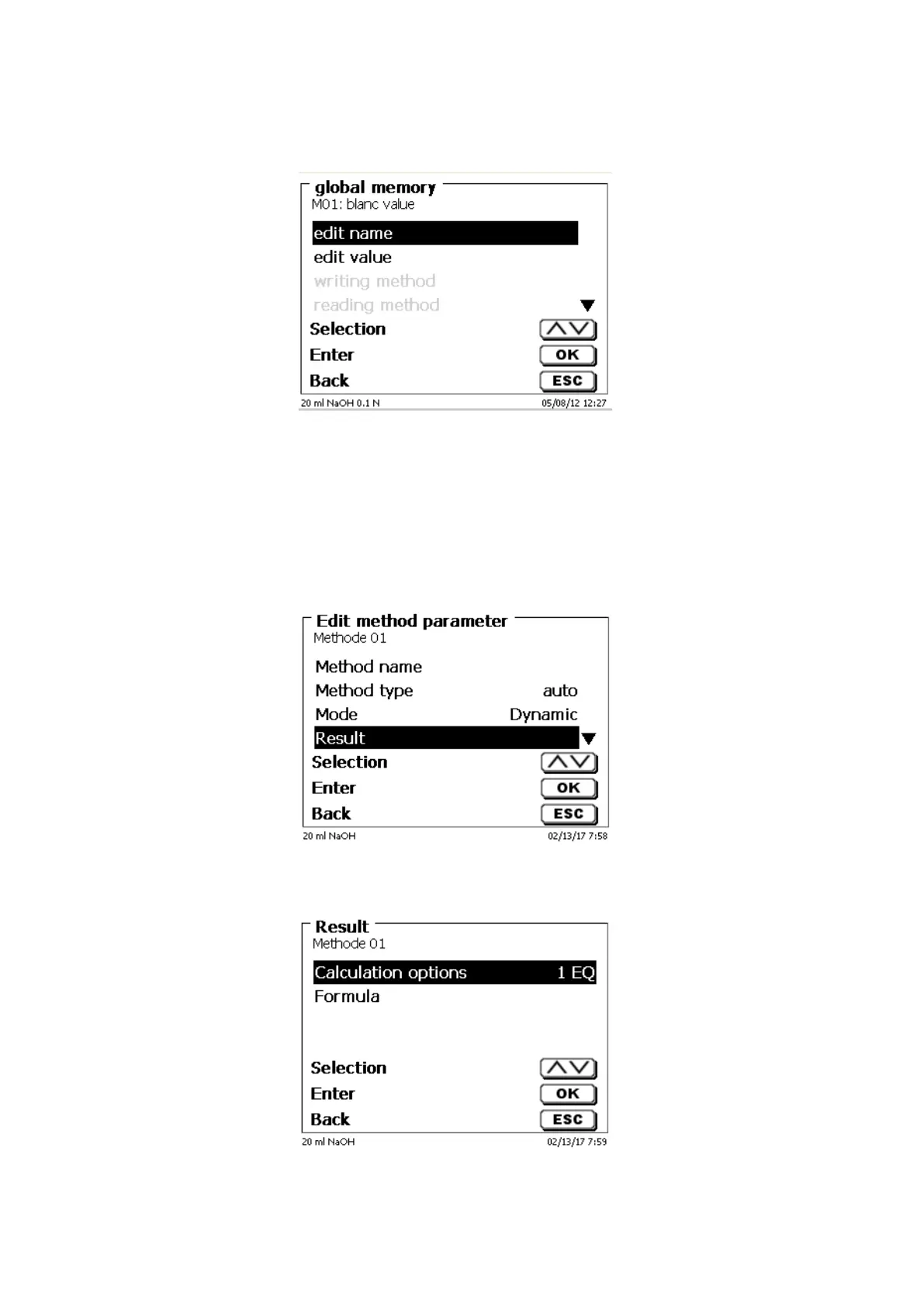 With <EDIT> you are going to «Edit method», «New method» or «Default methods» and select then «Result»