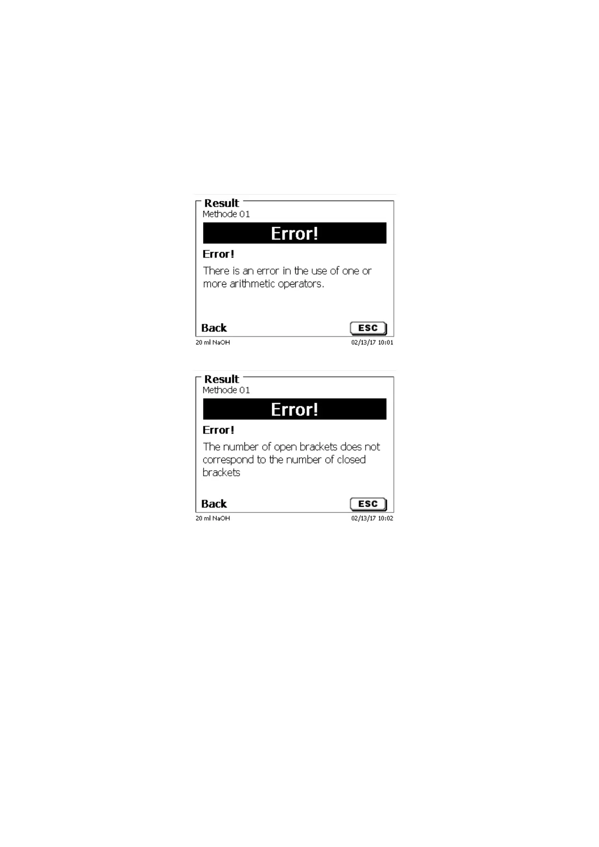 If an error occurs in the syntax, an error message is displayed (Fig. 89 and Fig. 90).