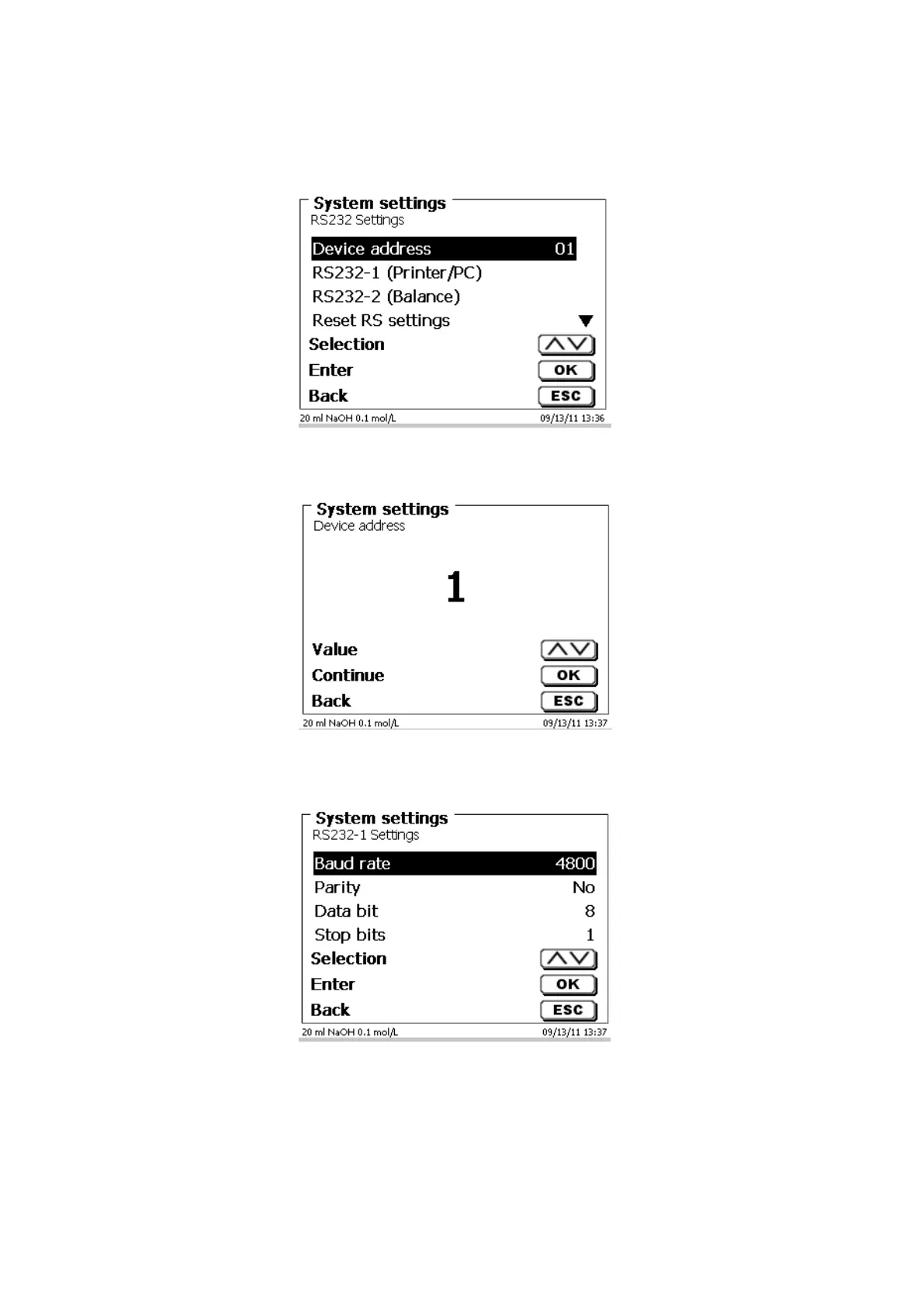 The «RS232 settings» item can be used to determine the device address of the TITRONIC
