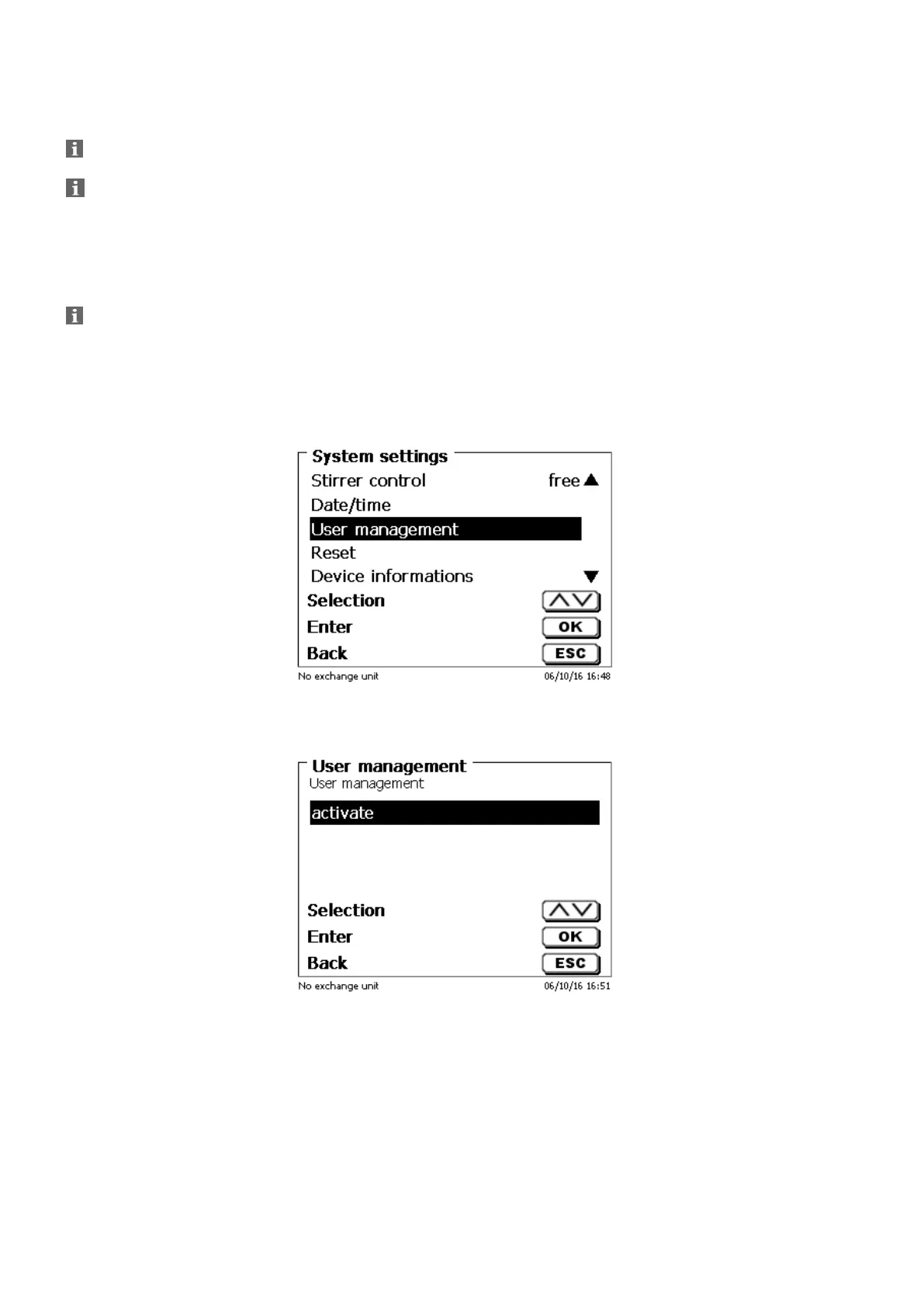 «Activate» the User management with <ENTER>/<OK> (Fig. 113).
