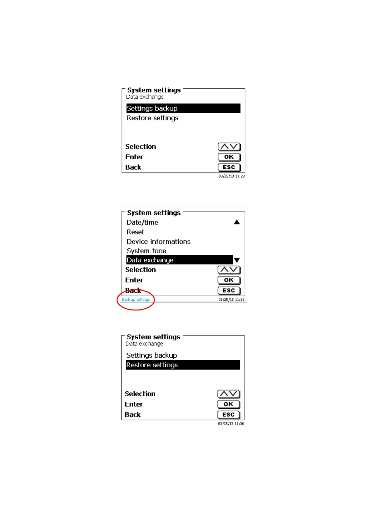memory. It is also possible to transfer the settings from one titrator to another one. The backup will be started