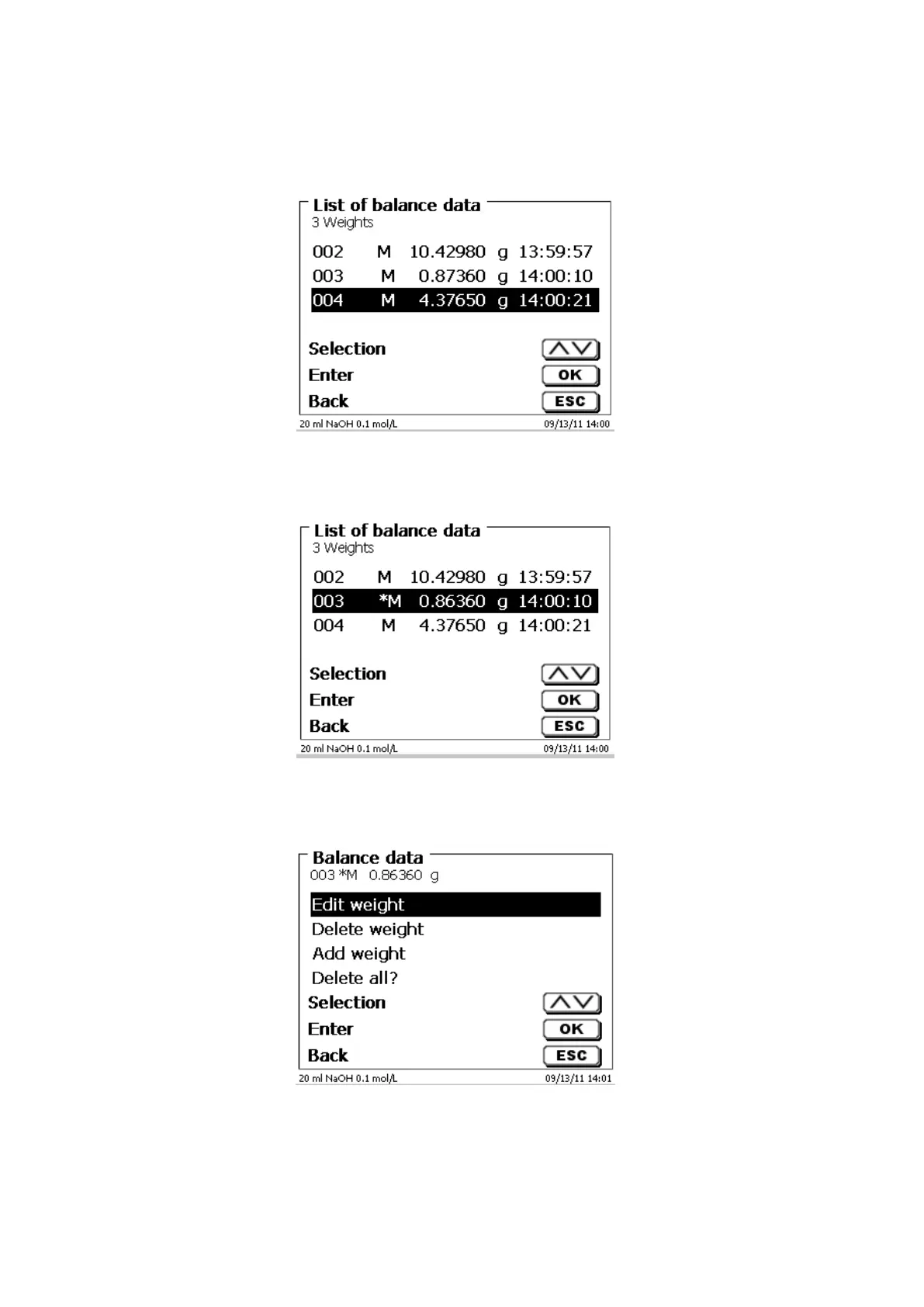 Following a change, a star will appear opposite the weighed-in quantity (Fig. 166).