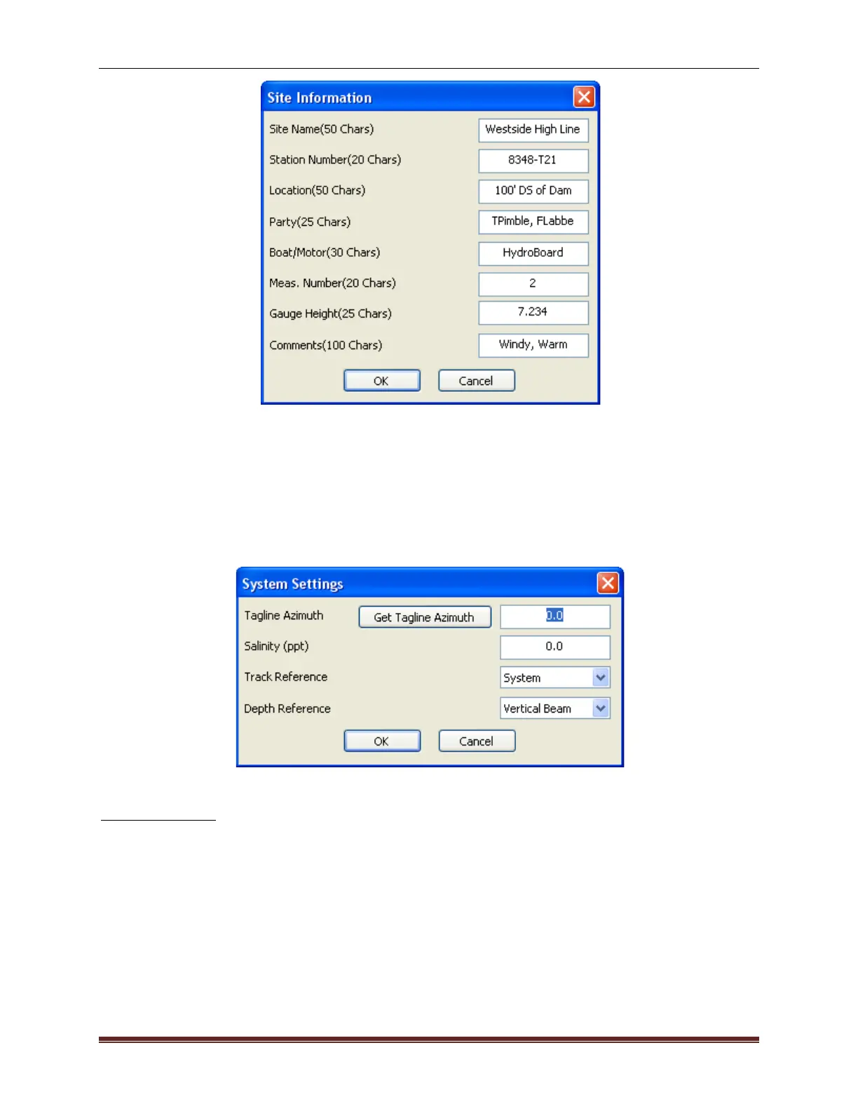 Click System Settings to input Tagline Azimuth, Salinity, Track Reference, and Depth Refer-