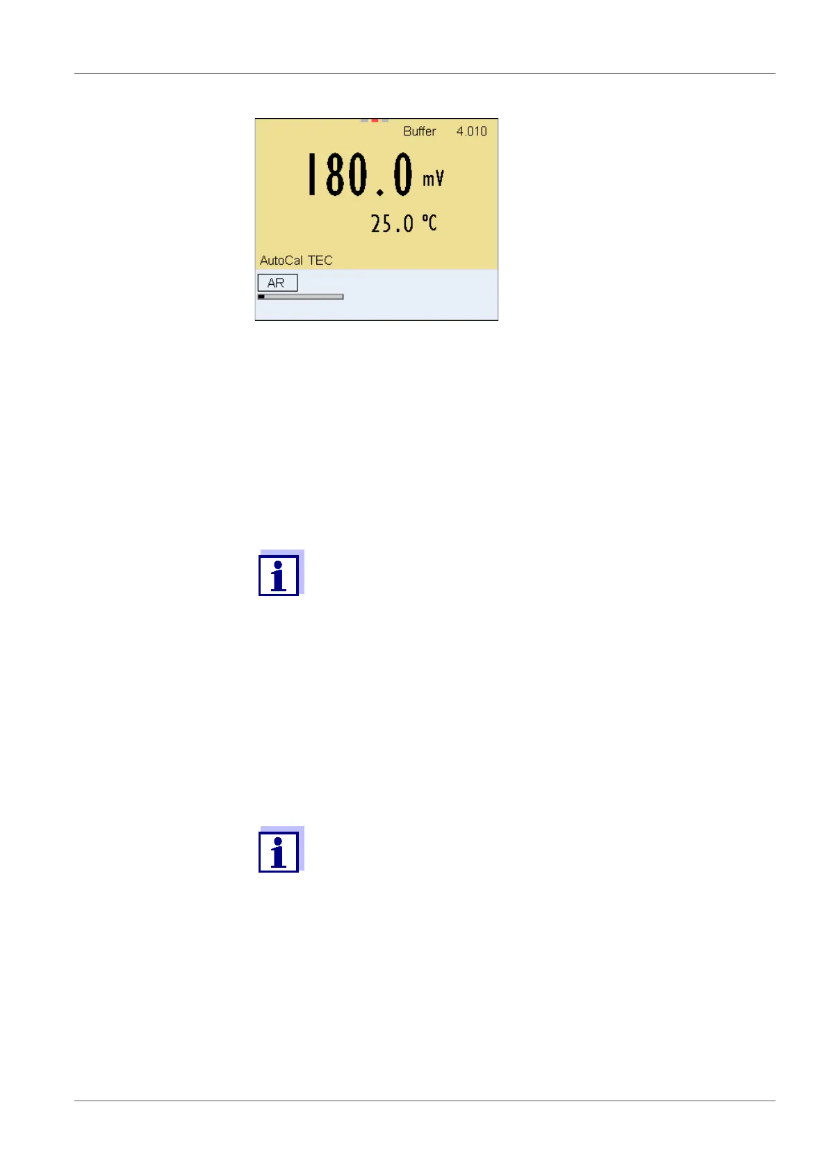 The calibration display for the next buffer appears (voltage display).