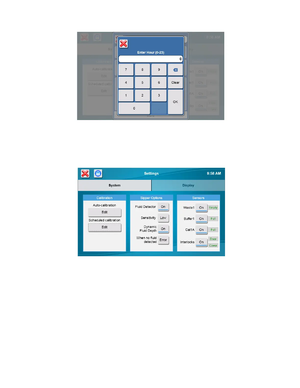 Enter the Hour each day that the instrument should calibrate in 24 hour format (0–23), then touch [OK].