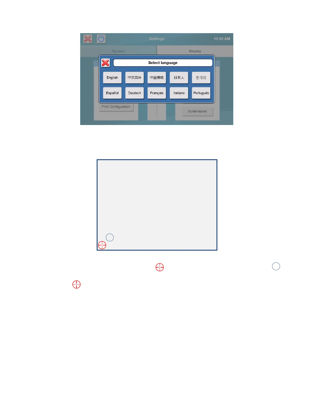 Touch the [Calibrate Display] button to enter touch screen calibration.